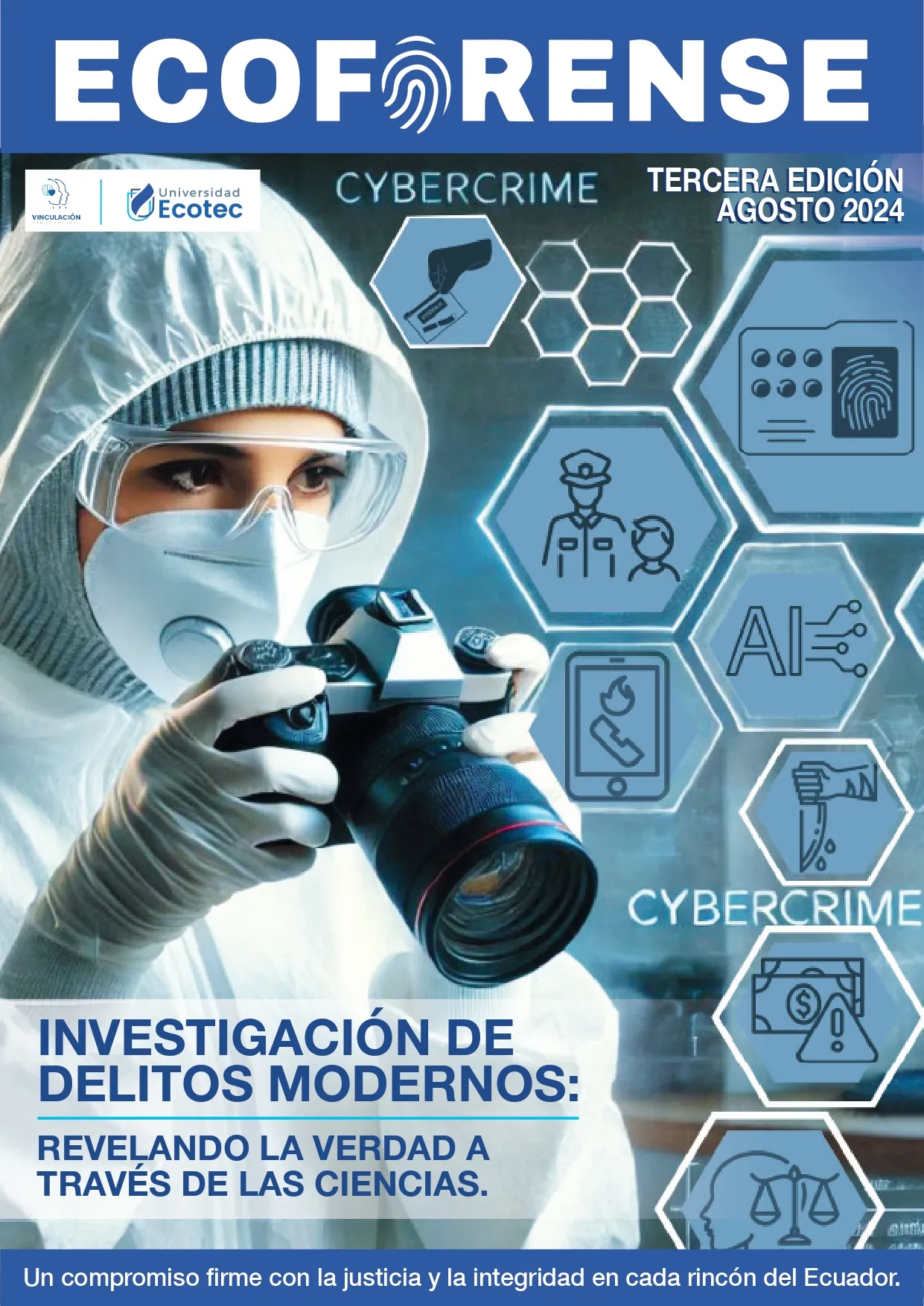 Esta revista creada por los estudiantes de la carrera de criminalística esta centrada en 3 ejes: Ciberdelitos, Accidentología vial y Toxicología Forense.
